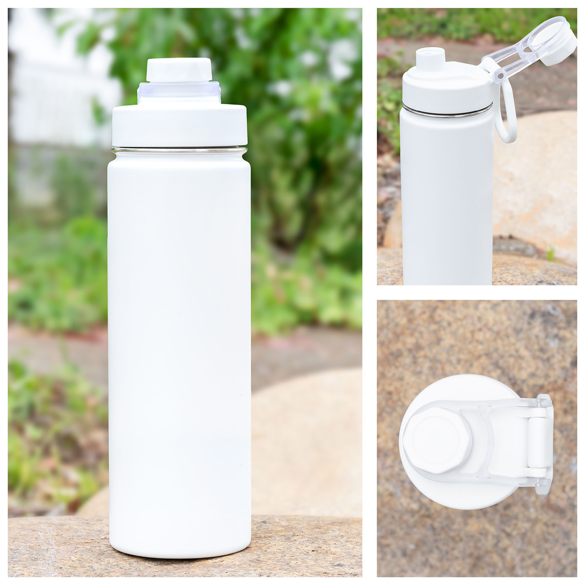 The h2go Conquer 24 oz thermal bottle is made to go the distance. Constructed from double-wall 18/8 stainless steel with copper vacuum insulation, it keeps drinks hot or cold for hours. It features a matching threaded lid with a built-in drinking spout and hinged cap for easy access, plus a sturdy carrying handle for convenience on the move. Finished with a durable powder coated exterior, Conquer is ready for wherever the day leads.