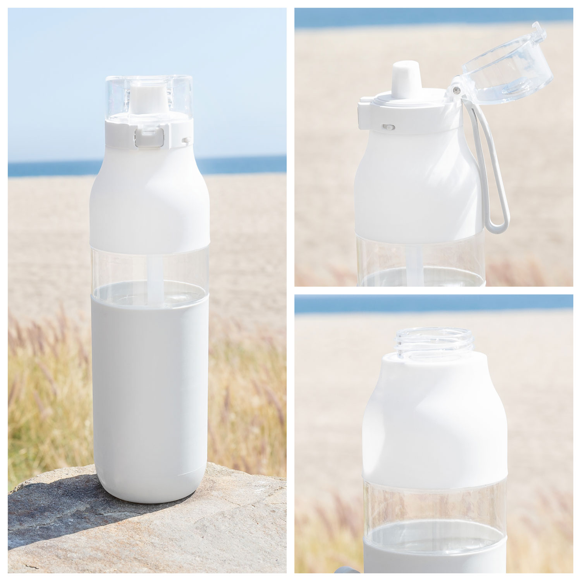 The h2go Void 25 oz bottle combines function, color, and convenience in one hydration-ready design. Made from BPA-free Eastman Tritan™ copolyester, this single wall bottle features a threaded lid with a push-button locking mechanism, silicone drinking spout, and integrated straw. Dual-tone silicone accents add grip and style, while the built-in carrying handle makes it easy to take on the go. Designed for cold beverages only.