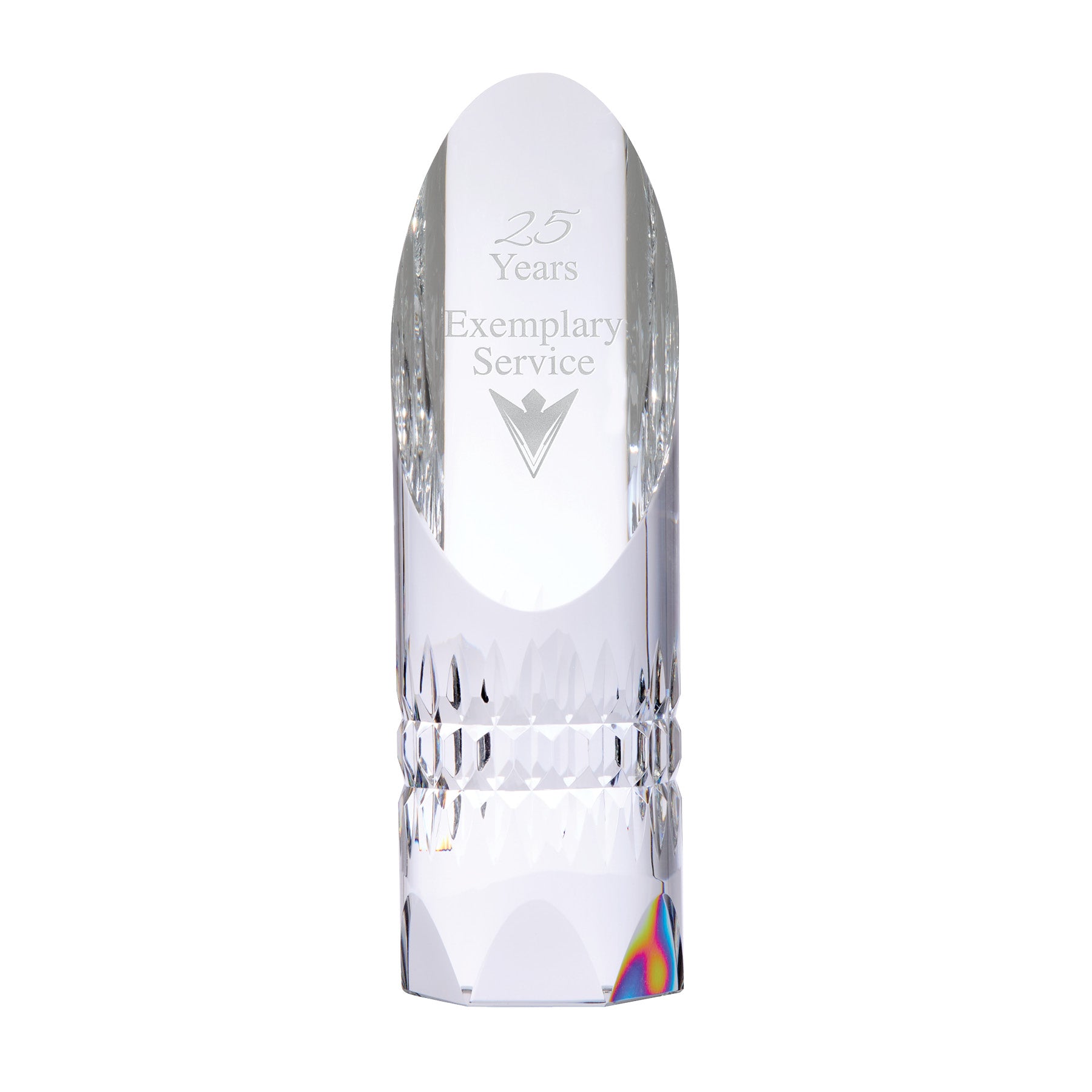 The Alphard Crystal Award Trophy is a refined masterpiece that embodies excellence and prestige. Crafted from premium crystal clear optical glass, this cylindrical trophy features a sleek, slanted top that offers a contemporary touch, creating an eye-catching display of modern elegance. The eye-catching laser-engraved pattern around the base adds a layer of intricate detail and sophistication. The engraving catches the light with a captivating brilliance, enhancing the trophy’s luxurious appeal. Perfect for corporate recognition, special events, or elite achievements, this crystal trophy represents the pinnacle of high-end craftsmanship, making it a timeless and unforgettable tribute to success.