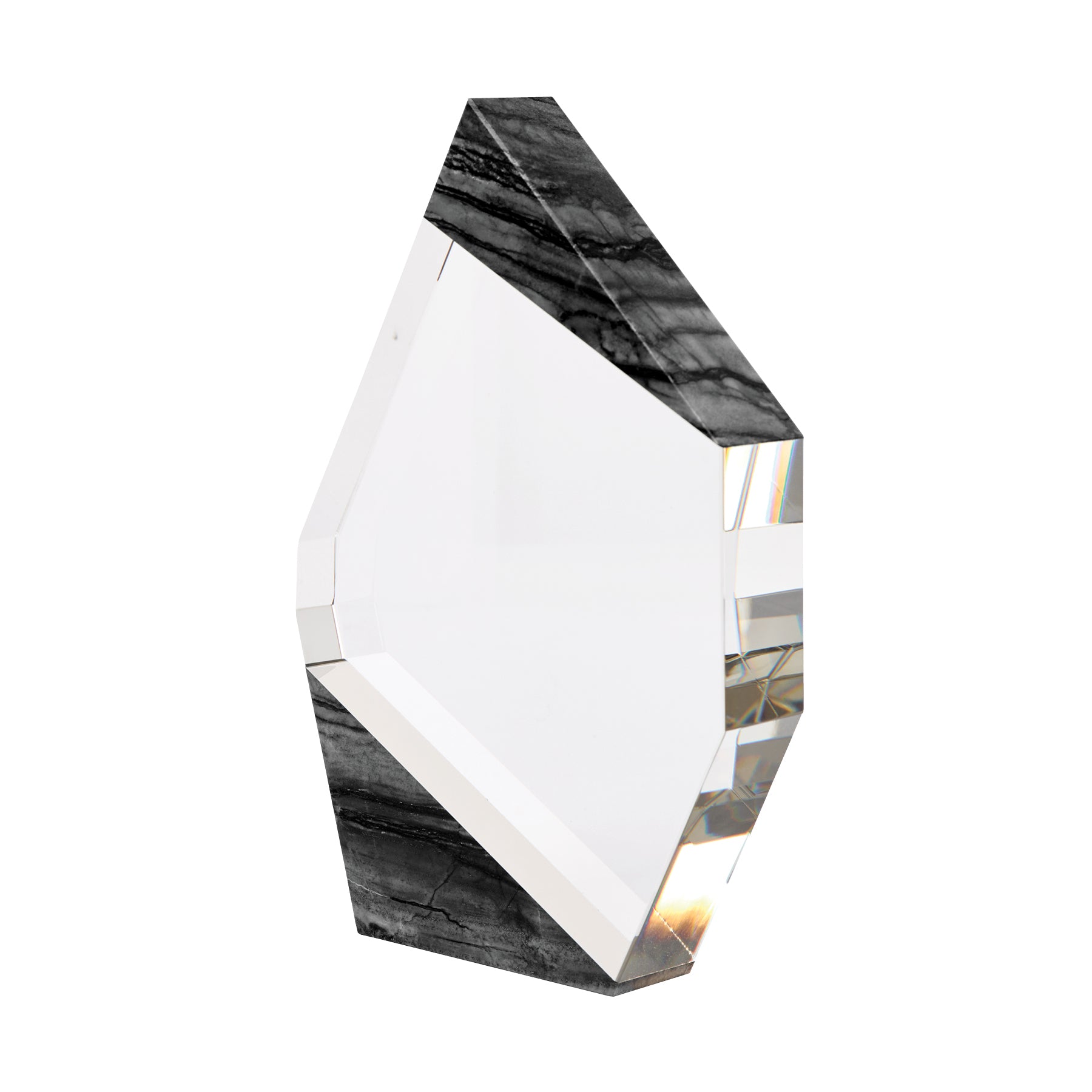 The Aquila Polygon Crystal Award is an exquisite piece that seamlessly blends geometric elegance with natural beauty. Its stunning design features a faceted crystal polygon body that catches and reflects light from every angle, creating a mesmerizing display. The base and top trim are adorned with luxurious marble, adding a touch of sophistication and contrast to the sleek, modern form. Perfect as a statement décor piece, this item serves as both a functional object and a work of art, enhancing any interior with its refined style.