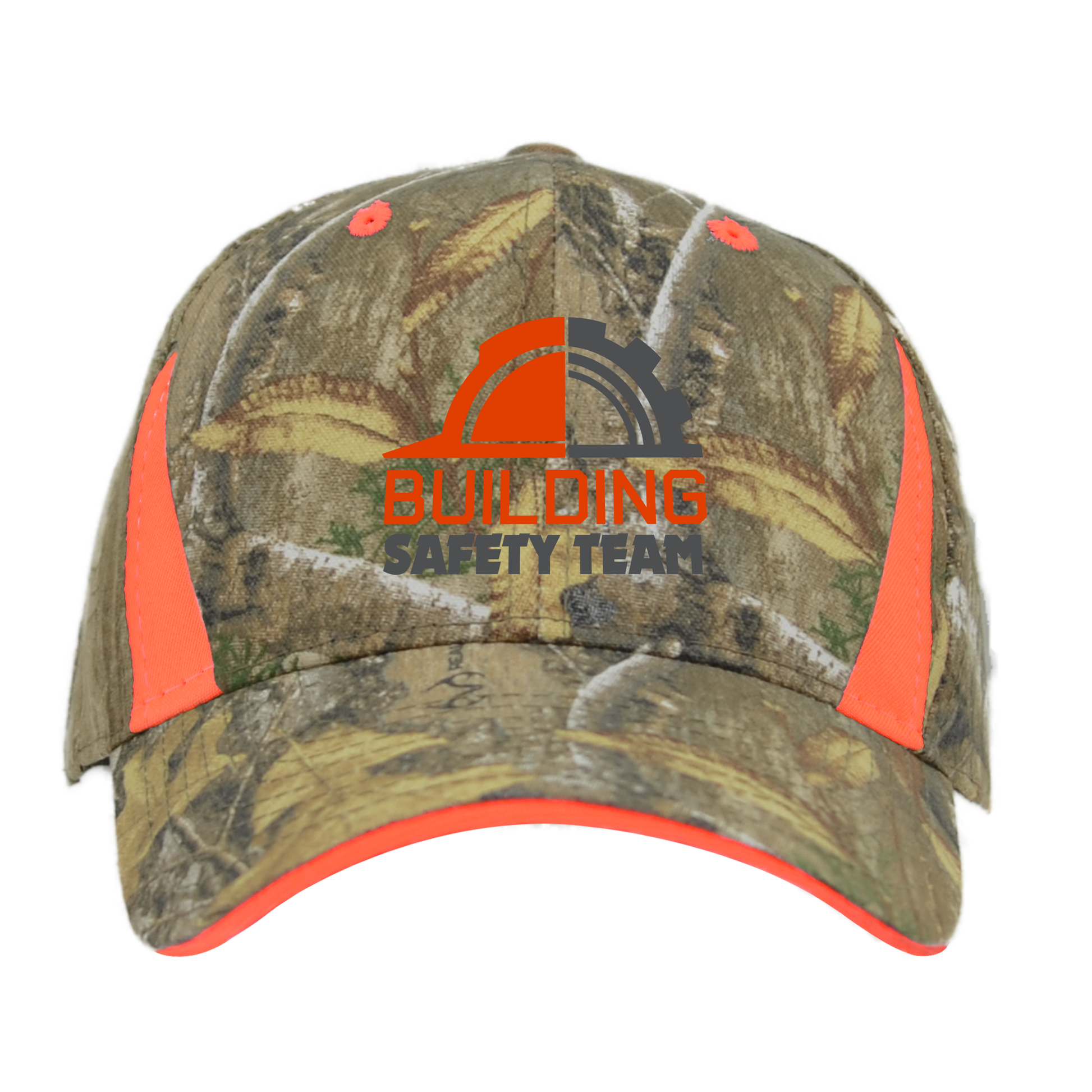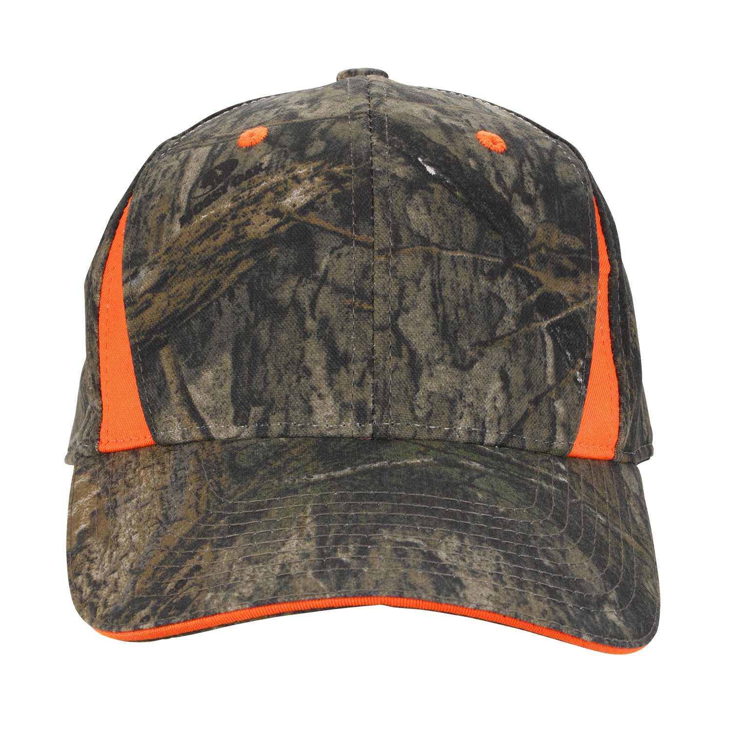 Camo Cap With Blaze Inserts features accent colored blaze inserts and fits most sizes.