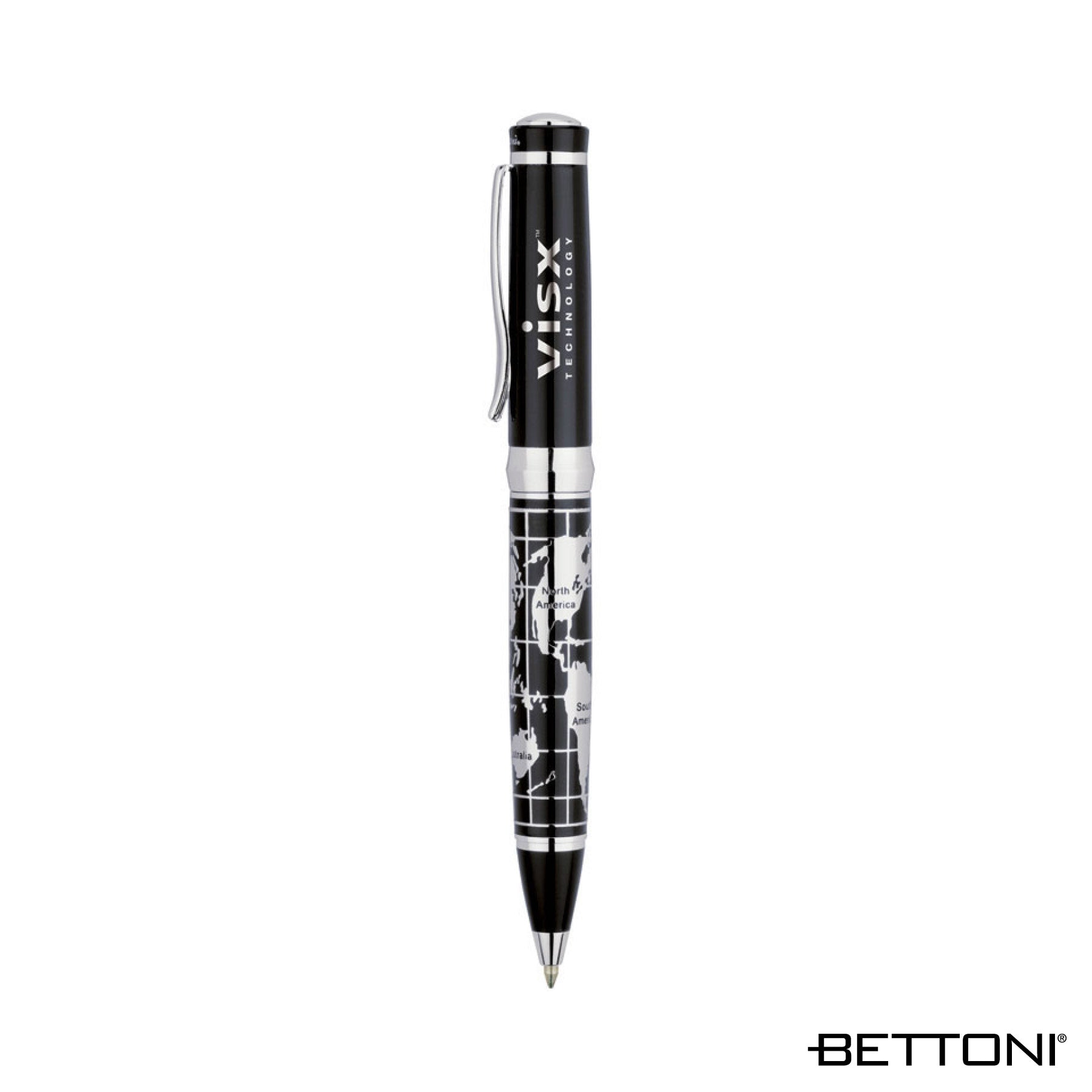 Elegant twist-action mechanism with chrome world map barrel and chrome trim.