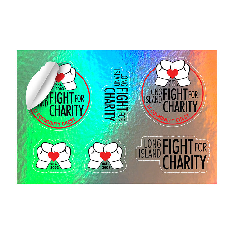 CustomCut™ Sticker Sheet/Decals allow you to gang up as many custom shaped stickers as you can fit into the size of the overall Sheet. Made with a Professional Grade 6 Mil Glossy Halographic Metallic looking Vinyl Material. Each sticker inside the Sheet is individually kiss cut to the contours of your custom logo design. There are No Die or Die Cutting Charges! They come in individual single sheets for easy distribution (as opposed to a continuous roll). For indoor and outdoor use, water resistant and removable for up to one year. (exposure to direct sunlight may accelerate fading). Pricing includes up to a full color PhotoImage® digital imprint. All Sticker designs inside the Sheet require a 1/8” white border around the artwork design.
