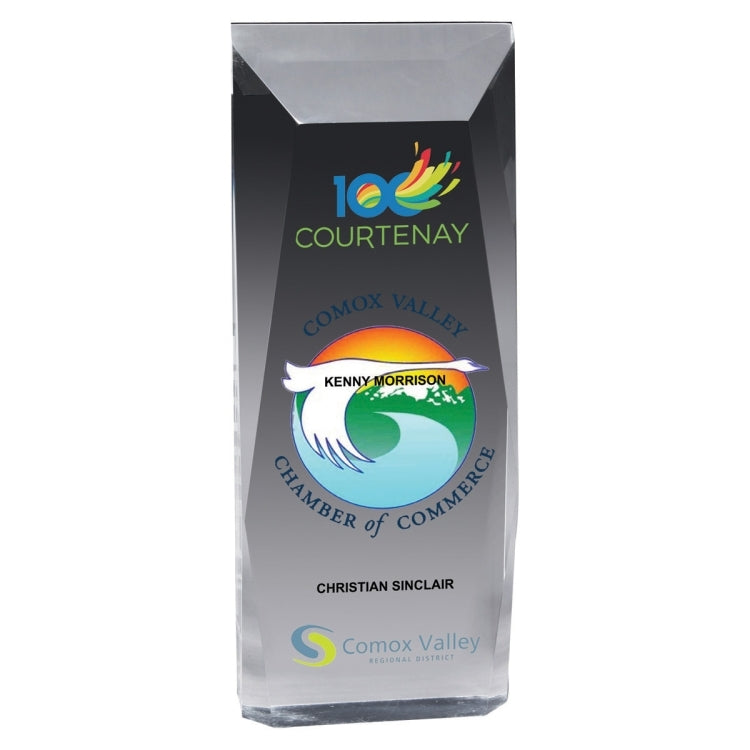 These tall and elegant multi faceted awards make a recognition impact the recipient will never forget! They can be Screen Printed, Laser Engraved or 4 Color Process Printed