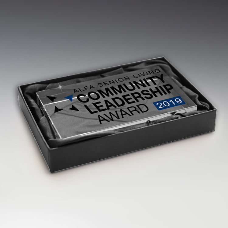 Glass paperweights are a budget friendly way to award the best in your organization. These quality awards are a great reminder of a job well done. Screen printing keeps costs low and optional laser engraving adds a personal touch.