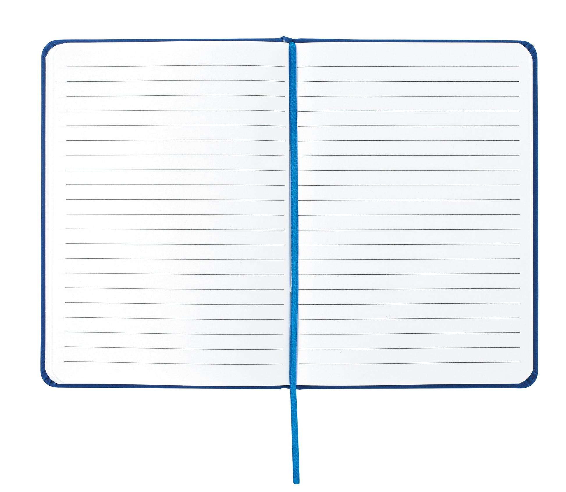 Jot notes or record daily happenings with this 5" x 7" journal, featuring a soft leatherette cover. A colored elastic band and ribbon bookmark add an extra touch of style.