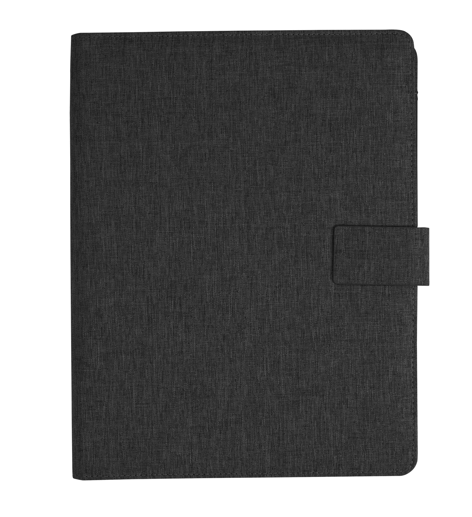 This heathered casual padfolio is a stylish way to stay on task. Inside you’ll find plenty of features to keep you organized throughout the day, including card slots, a pen loop, an integrated pocket, a tablet/document compartment with hook-and-loop closure, and a 30-page FSC®-certified lined writing pad. The magnetic closure snaps shut to keep everything in its place. The FSC® label means that the materials used for this product come from well-managed FSC®-certified forests and other controlled sources. 58% of overall product made of post-consumer recycled polyester and cardboard.