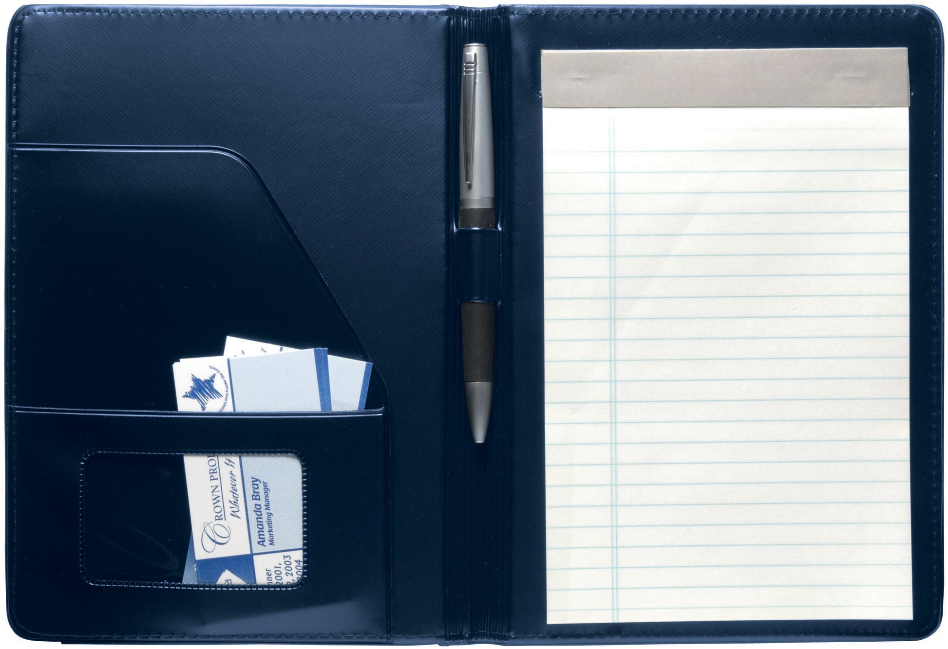 The Jr. Executive Crescent Padfolio offers a professional organizer with a slip pocket, notepad, and space for cards and a pen. The FSC® label means that the materials used for this product come from well-managed FSC®-certified forests and other controlled sources.
