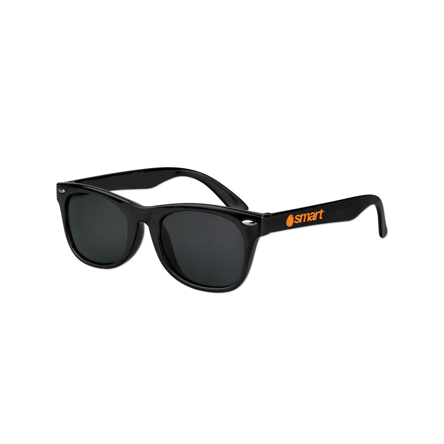 Our high quality, Iconic kids sunglasses have UV400 protection and are great for kids. Ideal for outdoor events, schools, travel agencies and event planners. Plastic. Available in multiple colors. Frame Width: 4 7/8"; Arm Length: 5" Available in: Black, Blue/Black, Red/Black, Green/Black, White/Black, Pink/Black, Assorted