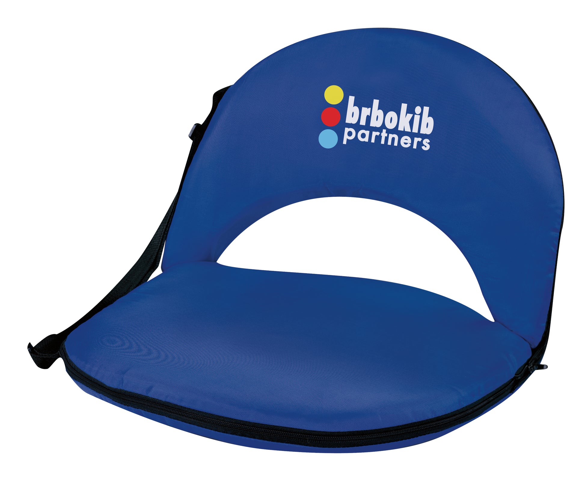 We've put a new twist on the old stadium seat. The steel-framed seat snaps in and out of place and the shoulder strap makes it convenient to carry.