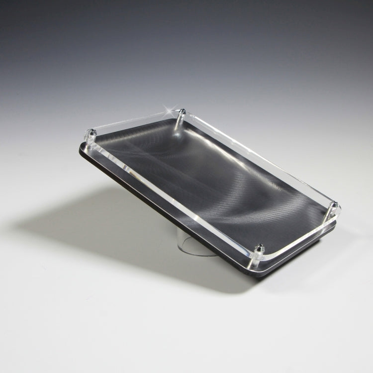 These innovative new awards include an acrylic layer with silver screws on top of a swirled metal base and are elevated on a slanted oval acrylic base. The floating acrylic can be screened or 4 color process printed or laser engraved.