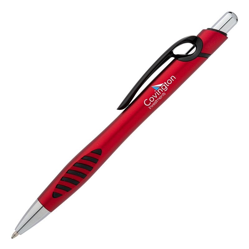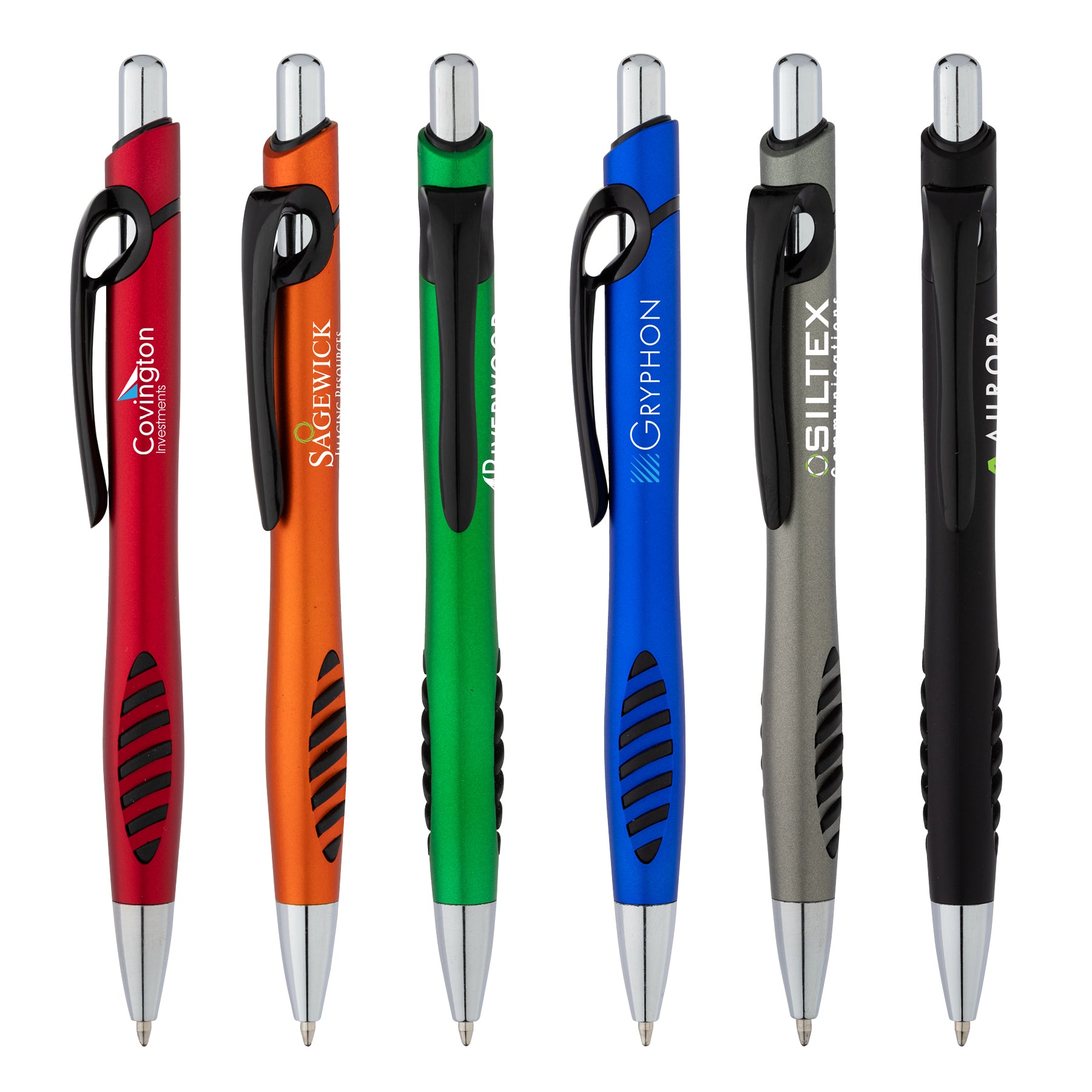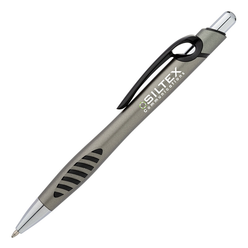 Gift the Spokane Plunge-Action Ballpoint Pen to your new hires or take them to your next tradeshow as a giveaway for customers. The D-ring clip design can easily attach to lanyards or wall hooks and the smooth metallic finish and textured rubber accent grip give it a unique look and ergonomic feel.